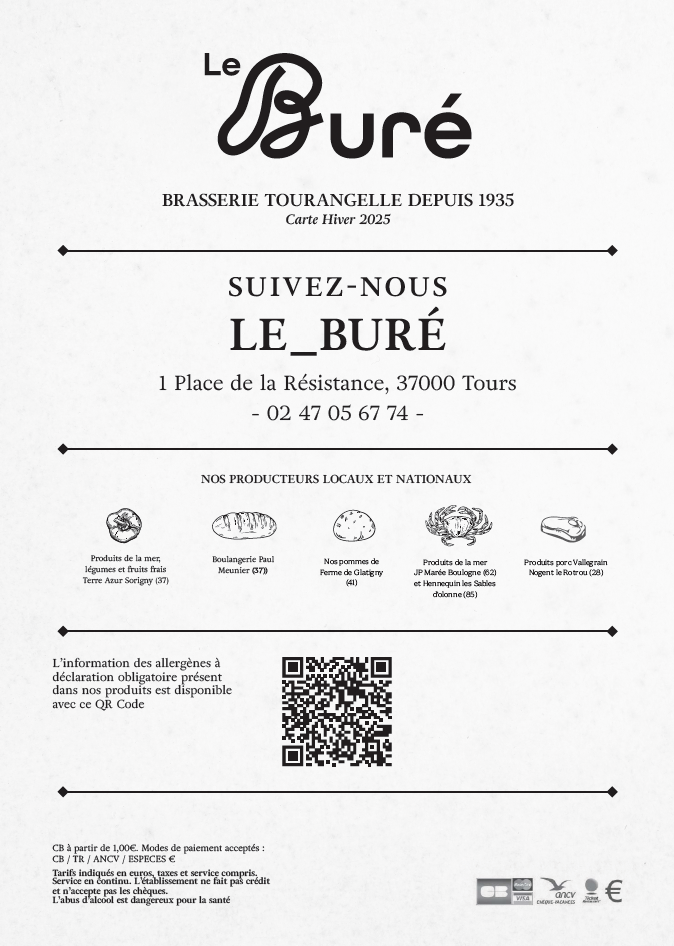 Idéalement situé au centre ville de Tours, notre restaurant vous propose des plats traditionnels français.
